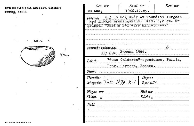 • ETNOGRAFISKA MUSEET, Göteborg MDICgt ARKEOL. Gen. n:r Samt n:r • Dep. n:r 90 564 i 1966.47.89. Föremål: 41.3 cm hö ä skål av rödmålat lergods med inböjd mynningskant. Diam. 642 cm. Ur gruppen itParit... Visa hela