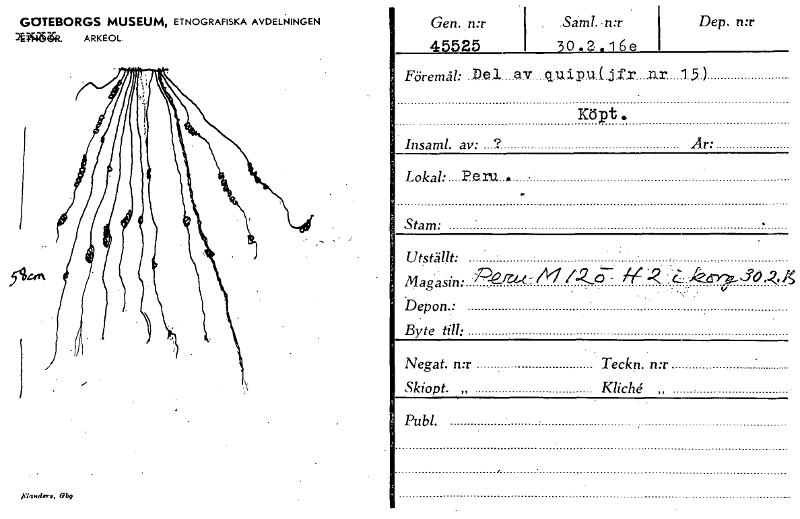 • Ainwiers.ak Gen. n:r 45525 Saml. n:r 30 .2 .1 6e Dep. n:t Föremåh Del av quipu(jfx nr 15) Köpt . Insaml. av: ? År: Lokal:....P.e.r.u.... Stam: Utställt: Magasin: .-Zy Depon.. Byte till: Negat. n:r ... Visa hela