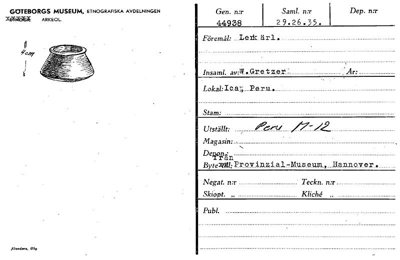 • Katalogkort ur Världskulturmuseets arkiv.