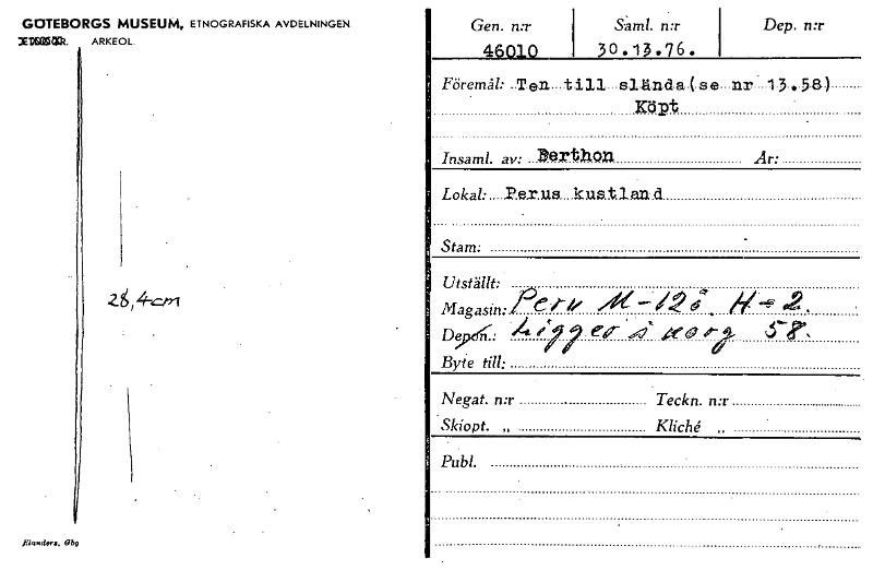 GOTEBORGS MUSEUM, ETNOGRAFISKA AVDELNINGEN XDOZ Ca ARKEOL S:aml. n:r 30.13.76. Föremål: iron...t111.-slända.(se. nr 13..5.8) Köpt Insaml. av: Berthon År: Lokal:.. Per.us. kustland Stam: Utställt: 2,...