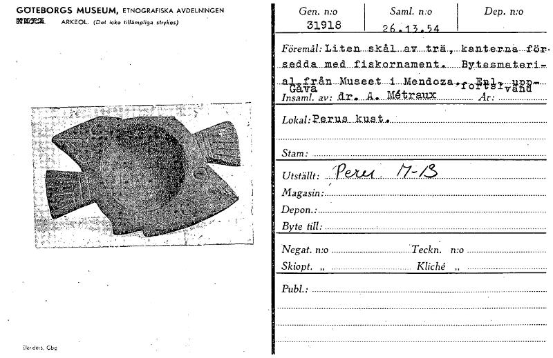 GOTEBORGS MUSEUM, ETNOGRAFISKA AVDELNINGEN inlera. ARKEOL. (Det icke tillämpliga strykas) Elande:s, Cbg Gen. n:o 31918 Sam!. n:o 213..54 Dep. n:o Föremål: Liten....s.k.å1 .a.v trä.,...kantannå-ltör ...a.ed.d.a....me.d...f.takorn.ane n.t.. By.t.e.sraat.e.r.i..,. ...a.1,f.r.ån...Musee.t....i....Mandoza..f opeil.--14ER -- (kava va Insaml. av: dr. Sk.. 1116t r aux År: Loka1:11e.r.us....k.US.t... Stam: ,- Utställt: n 1-- w-t /47_/3 Magasin: Depon.: Byte till: Negat. n:o •Teckn. mo Skiopt. „ Kliché „ Pub!.: [ocr]