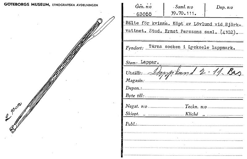 • - Utställt GOTEBORGS MUSEUM, ETNOGRAFISKA AVDELNINGEN Gen. n:o - 63055 - Sand. n:o 39.70.111. Dep. n:o - Bälte för kvinna. Köpt' av Lövlund_vid,Björk,_ vattnet. Stud, rn$I_Perssons_saml— (4102)— Fyn... Visa hela