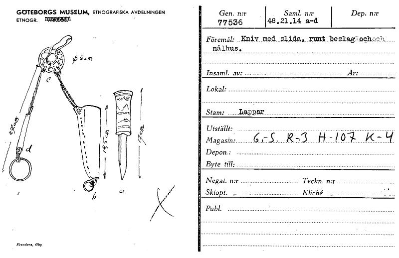 • GOTEBORGS MUSEUM, ETNOGRAFISKA AVDELNINGEN ETNOGR. 11~ Publ. cr Gen. n:r 77536 ISaml n:r 48.21.14 a-d. Dep. n:r Föremål: .. med_gldaa_runt_bo slag og r,n1, nålhus Insaml. av: .Ar: Lokal: Stam: Lapp... Visa hela