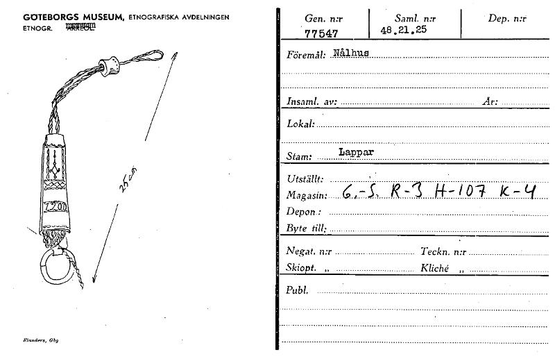 • GOTEBORGS MUSEUM, ETNOGRAFISKA AVDELNINGEN ETNOGR. witP132 Gen. n:r 77547 Samt n:r 48.21. 25 Dep. n:r Föremål: Mims Insaml. av: Ar: Lokal: Stam: Lappar Utställt: Magasin: I 1 i44 O? K - Depon.• B... Visa hela