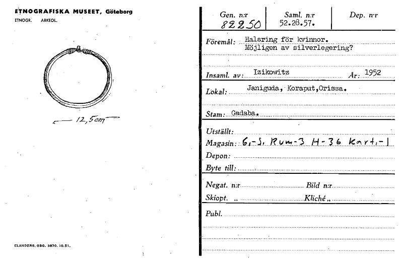 • Katalogkort ur Världskulturmuseets arkiv.