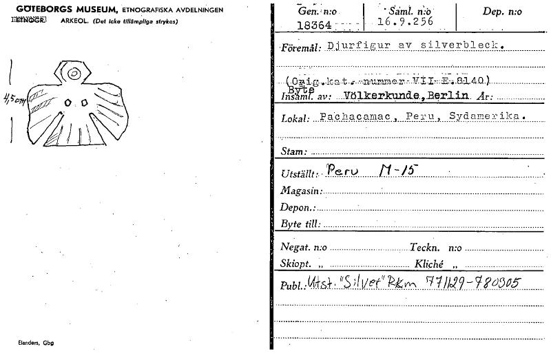 GOTEBORGS MUSEUM, ETNOGRAFISKA AVDELNINGEN I1eTUdZii.1 ARKEOL. (Det icke tIIImpIiga strykes) Elanders, Gbg _,.. . Gerr.,n:o . • 18364 - — - . . -SaMl. n:b • [ • 16 • 9 ..25 6 Dep. n:o . . _ . 'Föremål: Djurfigur av silverbleck. ...._ . . ........ . ._.... .. . ..... ...... .....(i30-14.. is -.-k - :.--rturun e. r - V I In: E.-4.81.40.) /ns mP .av: T...•Alke.rictind.o.,.Berlin. År: Lokal: Pachacamac , Peru, Sydamerika. Stam: Utställt:.- rPe- ro P - /Y . Magasin: Depon. • Byte till: • Negat. n:o Teckn. n:o Skiopt. .„ Kliché „ Publ..(k ä ' " 3 3 V et kkv\'• 71109 –7 S )k9 05 • [ocr]