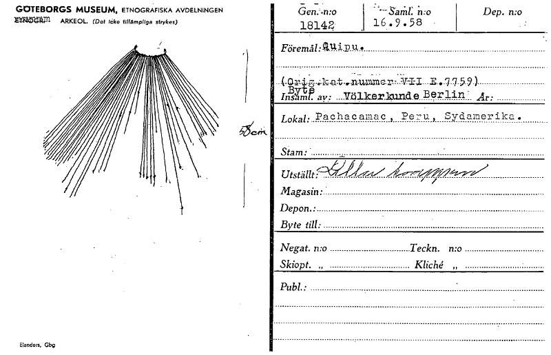 GOTEBORGS MUSEUM, ETNOGRAFISKA AVDELNINGEN älT~Tri ARKEOL. (Det iCke tillämpliga strykas) Elanders, Gbg Gen.'41:o 18142. ----Saint n' :o 16 . 9 . 58 • Dep. n:o : ,. Föremål:R.11j. pu. ..„. _ .. .•,.. --.(-01-1k2,-t...-nursime-r- 'InBsLP av: ...:Tölk.ezkund.e Berlin Är: Lokal: Paehac arme , Peru, Sydamerika. Siam:. Utställt:. Magasin:. Depon • Byte till: Negat. mo Teckn. mo Skiopt. „ Kliché „ Pub!.: [ocr]