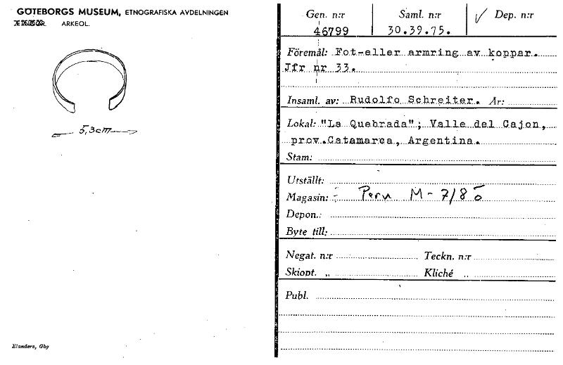 • GOTEBORGS MUSEUM, ETNOGRAFISKA AVDELNINGEN X NOM ARKEOL. ,,f-3 c 177 E/roders, Obg Gen. n:r • i 46799 Sa. ml. n:r 30.39.75. / Dep. n:r Föremål: .F.o.t.,,..e.11e.r...arrartn.g...av....kop.p.ar... I . ' Jfr nr 33. 1 Insaml. av: ...RUdOlf0 Sehreiter... Är: ..t.t.1.å Lokal: Q,ue.b.racia!!..;...V.a.1.1e....cle.1...0.a5on., Argentina... pr.av ..G.a.t.ania.r:c.a., Stam: _ Utställt: Magasin: - 9 \A l'-'1 7/ b) 0 Depon.; Byte till: Negat. n:r Teckn. n:r Skiont. „ Kliché , Pub!. [ocr]