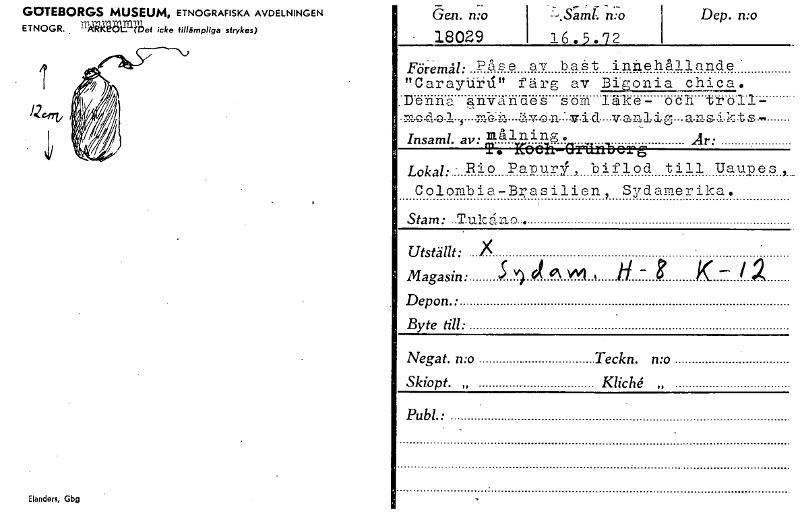 • GOTEBORGS MUSEUM, ETNOGRAFISKA AVDELNINGEN ETNOGR. ITA1106g1riet icke tillämpliga strykas) Elanders, Gbg ten. no - 18029 . 21,SSM r."n7o 16.5.72 Dep. mo Föremål: Påse "CarayUril" 'färg Denna A.nvanae... Visa hela
