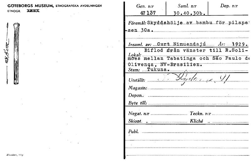 • GOTEBORGS MUSEUM, ETNOGRAFISKA AVDELNINGEN ETNOGR. nerta. Eholders,G19 Gen. n:r 47 137 Samt. n:r 30.40.30b. Dep. n:r - Föremål: Sky.d.clahälj.e av b.a_mb:u..för pil.s.p.e. _sen...30a. Insaml. av: ....... Visa hela