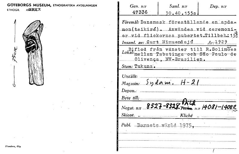 GOTEBORGS MUSEUM, ETNOGRAFISKA AVDELNINGEN ETNOGR. Aarka.X Elanders, Gbg Gen. n:r • 47336 - Saml. n:r Dep. n:r 30.40.155a1 Anvä.nde.s vid e.e.r.ernon.i:r. Nimuend aj tt Ar:1929 Föremål: tiansmazk......