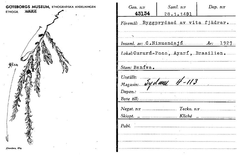 • GOTEBORGS MUSEUM, ETNOGRAFISKA AVDELNINGEN ETNOGR. XRIZEZD Samt. n:r 28 • 1 • 1 4$1 Föremål: RyggDry.cluad...av . v i.t.a. .f.j.ä,c1rar Insaml. av: ..C....Nimuendajii År: 1 9 2.7. Lokake.ur.ux.11,r... Visa hela