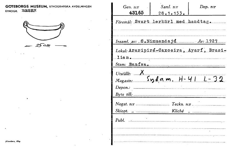 GOTEBORGS MUSEUM, ETNOGRAFISKA AVDELNINGEN ETNOGR. 2rAiraggLX Gen. n:r Samt. n:r 43165 28 . 1 . 15 3 . Dep. n:r Föremål: ................................................. Insaml. ,av: • År: 19.27 Lokal:. AraX. i,pirei-Cåxo e ira Ayarr', Brasi- ._. nem.. Stam: .Bardva. Utställt: Magasin: Depon • Byte till; t,)10‘vvi,jLfl L- Negat. n:r Teckn. n:r Skiopt. „ Kliché „ Publ. - kelas:der.. Gby [ocr]