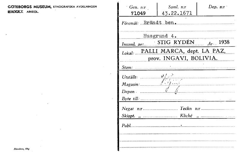 • Katalogkort ur Världskulturmuseets arkiv.