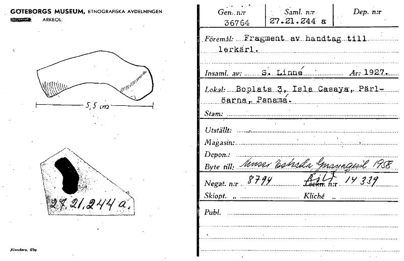 GOTEBORGS MUSEUM, ETNOGRAFISKA AVDELNINGEN ~ak. ARKEOL. , - Gen..n:r Saml. n:r Dep. n:r 36764 27 «Z1 .2-44 a Föremål: . Fragment av. handtag _till lerkärl. Insaml. av: Linne År: 1927., ..... Lokal: B.o.p.Iat.s.. 3.,_ easaya,, Pärl- öarna i., Panama".. Stam: Utställt: Magasin: Depon.« Byte till: -//- 44&, 31fr , 4tr. n:r ".,Y Skiopt. „ Kliché„ Publ. ,.14‘24e /9T Negat. n:r ?7,Y 'anfaders, Gb9 [ocr]