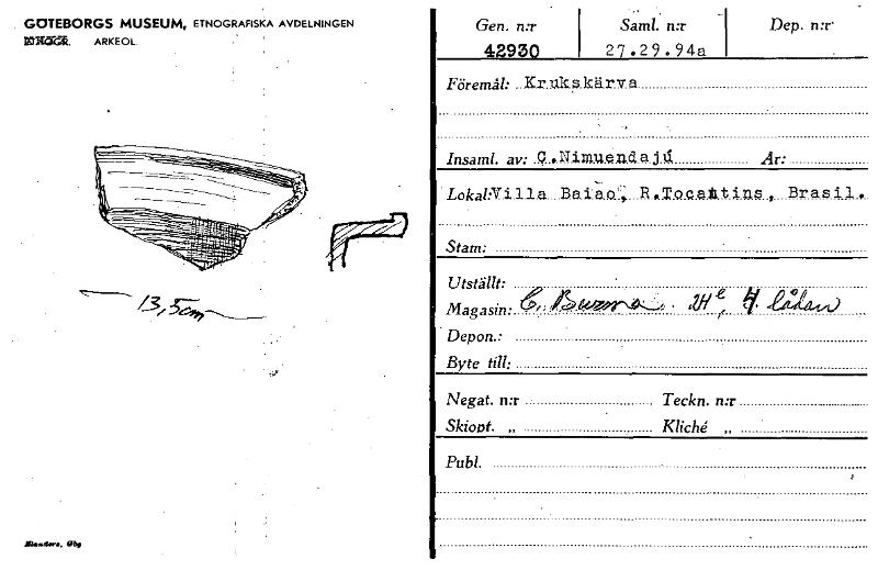• • GOTEBORGS MUSEUM, ETNOGRAFISKA AVDELNINGEN EntaX. ARKEOL Ifflawkra. Obe Gen. n:r 42930 Sa'ml. n:r 1 i 27.29.94a Dep. n:r i Föremål: _.K.ruic.s.kä.r.va .. Insaml. av: .9 . Niamend.a j Ii År: - .. B... Visa hela