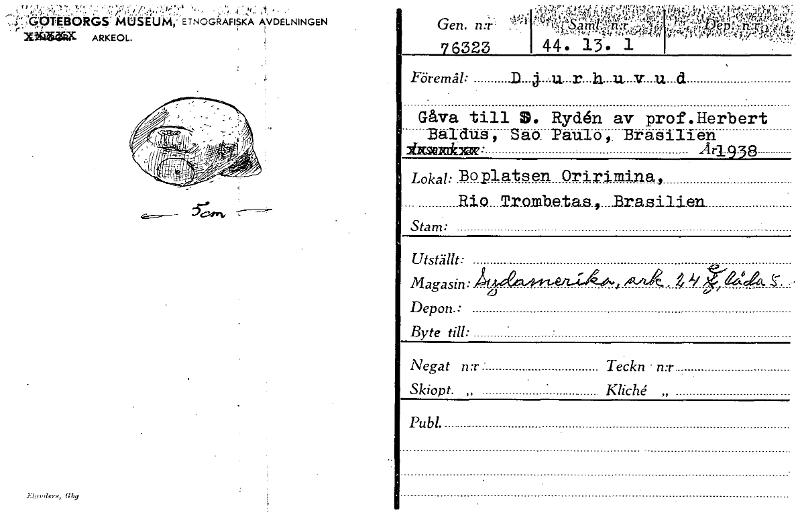 , J. G'OTEBORGS' MUSEUM, ETNOGkAFISKÅ AVDELNINGEN Xliktifulra ARKEOL. .L 5' ',lers, G hg t..:1,.• Gen. n x .'• " 76323 ; "'15k,541111:‘,: 44. 13.. 1 . . - e . ,7 Föremål: -D j- la .r..11 u, v 1.2.. d ' Gåva till S. Rydén av prof.Herbert Baldus, Sao Paulo,. Brasilien Airsexcloor • Är1938 Lokal: Boplatsen Oririmin.a, Rio Trombetas., .Bra.silien Stam: Utställt: Magasin:ge"441-ei199-" "4-6€ - Depon.: Byte till: Negat n:r • Teckn • n:r . Skiopt. „ Kliché „ Publ. [ocr]