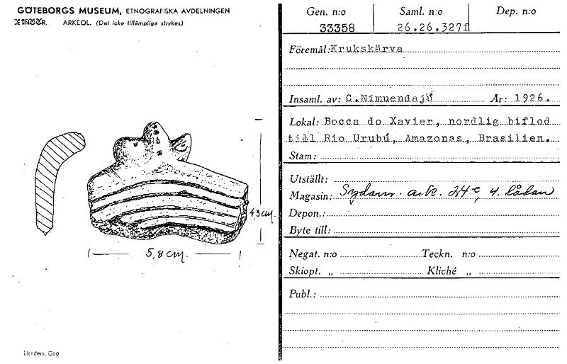 GOTEBORGS MUSEUM, ETNOGRAFISKA AVDELNINGEN ARKEOL. (Det icke till.impliga strykes) 5, cm/i Endes, Gbg Gen. n:o 33358 Sam!. n:o j 26 . 26.3 2'7 Dep. n:o Föremg:K.r.:uk...9.k.ä.r.v.a Insaml. av: 0....N.Ini.u.e.nda.Y.t.5 Är: ..1.9.2.6.— Lokal:..33.o.c.c.a.,....d.o....X.av..i.e.r.,....no.r.ilig....b.i.r.l.ad ..t.5..1.1...Rio 11.r.u.b.i1.,....Arnazo.na.s..,....B.r.as.ili.en....... Stam: Utställt: Magasin: y• Depon.: Byte till: Negat. n:o Teckn. n:o Skiopt. „ Kliché Pub!.: [ocr]