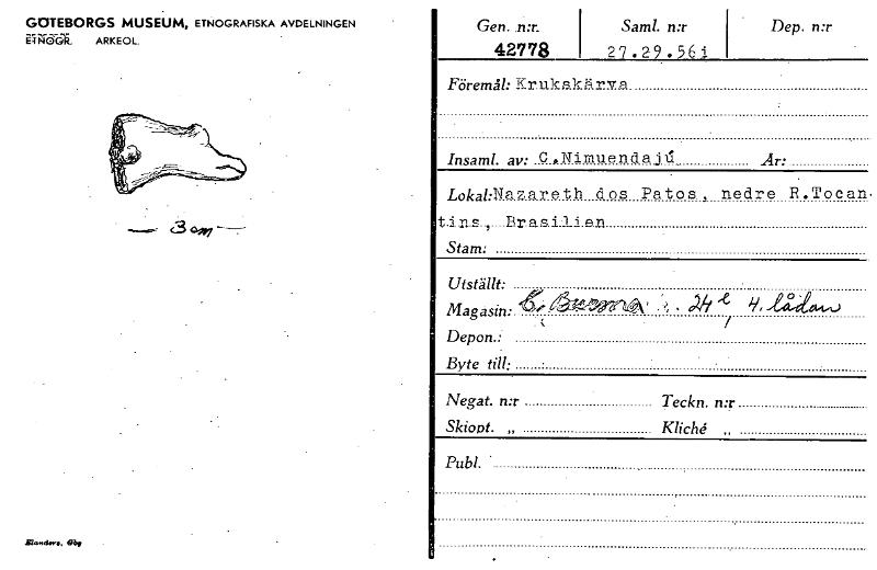 GOTEBORGS MUSEUM, ETNOGRAFISKA AVDELNINGEN Wida. ARKEOL. 3 49,7 - Eicand.r., Gen. ,nal 42778 Saml. n:r 1 27.2.9 . 5 6 i Dep. n:r Föremål: Krukskäri.r. ... . Insaml. av: C ,Nimuenda.D.1. Ar: LokakNaz...