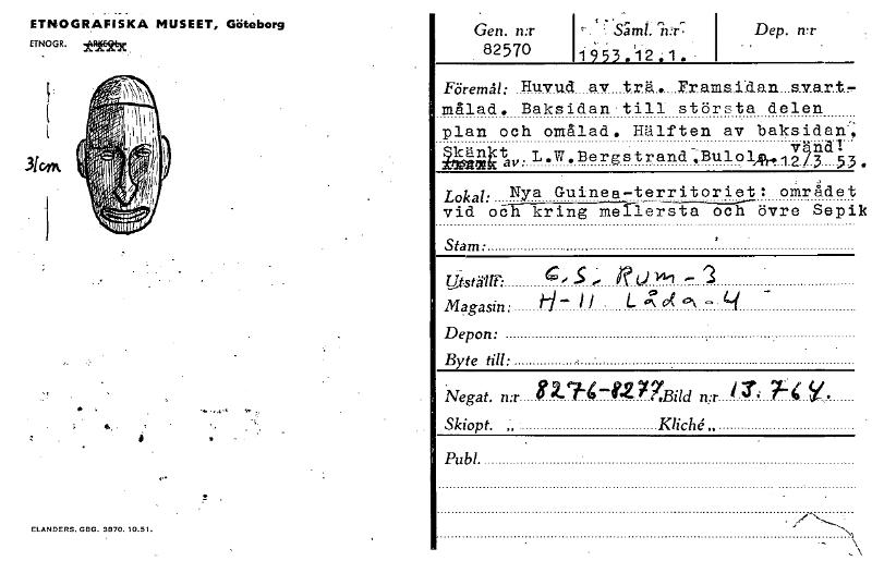 ETNOGRAFISKA MUSEET, Göteborg ETNOGR. isdijekx Gen. n:r 82570 Säml. 153.112:1. " n Dep. :IT Föremål; HuVUd av trä. Framsidan svart- målad. Baksidan till största delen plan och omålad. Hälften av baksidan:. tav.L.W.Bergstrand'.Bulo4,....110r;3. Lokal: Nya Guinea-territoriet : området vid och kring mellersta och övre Sepik kän z Stam: Ut- ställt': Magasin: Depon: Byte till: c,S; gulni Negat. n:r 2-7-4—g277Bild n:r 7.-4 Y. Skiopt. „ Klich e' „ Publ. ELANDERS.GBG. 3070. 10.51. [ocr]Stäng
