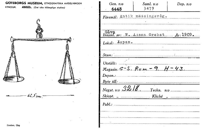 • GOTEBORGS MUSEUM, ETNOGRAFISKA AVDELNINGEN ETNOGR. (Det icke tillämpliga strykes) 6Z, fu,,, Elanders. Gbg Gen. mo • 6443 i Sam!. mo 3479 Dep. n:o Föremål: Antik mässingsvåg. Insami av• W. A..z.aon GrQbt Är: 1909 3, Lokal: lapan.. Stam: Utställt: Magasin: — S., R u »«..- — 9, # — q j Depon.: Byte till: Negat. n:o .3g a, Teckn. n:o Skiopt. „ Kliché „ Publ.. [ocr]