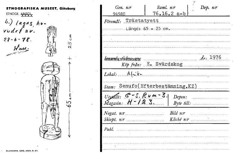 Gen. n:r I Sand. n:r 94980 76.16.2 a— Föremål: Trästatyett Dep. n:r Längd: 65 •+ 25 em, int.~553M~ jr: 1976 Köp från: E. S värd skog ELANDERS. G130. 4693. 5. 67. ETNOGRAFISKA MUSEET, Göteborg ETNOGR. ,sa,Fx2sc • 4.) iajas itke a•::-4. In,-----1 ...------ ---W40,4,4 , -,:•-%si In c-rz Lii 4- Lokal: A..s= Stam: Senufo( Ef t erb e s tämning .KZ ) Ut it: /L Id en -31 Depon: Magasin: -/4 3, I Byte till: Negat. n:r Bild n:r Skiopt. n:r Kliché n:r Publ. [ocr]