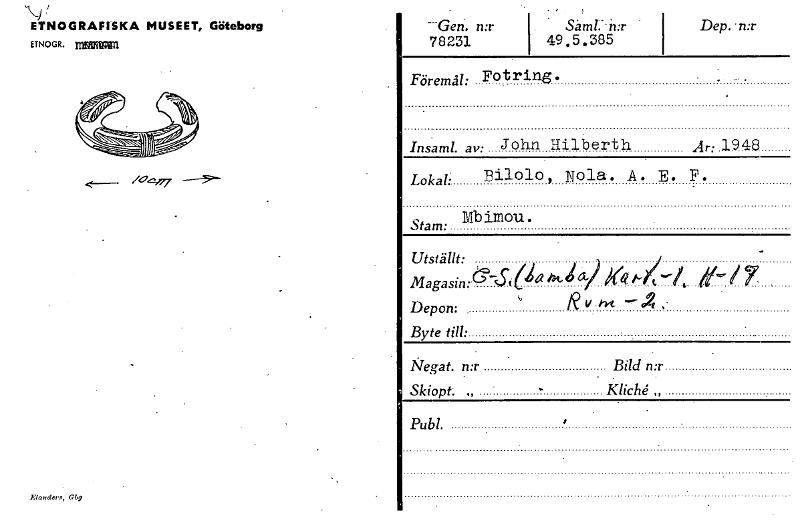• \-) ETNOGRAFISKA MUSEET, Göteborg ETNOGR. mnitpgn --Gen. n:r Säml,-.n:r 78231 49.5,385 Dep. •n:r Föremål: Fotring. Insaml. av: John Hilberth Är: .1948 Lokal. Bilolo, Nola. A. E. F. Wrbimou. Stam: - Utställt: Magasin4Vi Rilh2""*" Depon: Byte till: Åregat. n:r Bild n:r Skiopt. „ Kliché„ Publ. Elanders, alv [ocr]