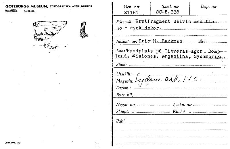 GÖTEBORGS MUSEUM, ETNOGRAFISKA AVDELNINGEN tetita»2. ARKEOL Gen. n:r Saml. n:r Dep. n:r 21181. 2G.5.338 Föremål: Kantrragment . .f.i.n gertryck .ekar. Insaml. av: EricT.H....B.ackman År: Loka/Fyndplats___på___Tinveräs-ägcr-,--Bamp----. land, käisiones., Krgentinar Sydamerika. Stam: Utställt: r Magasin: ,1-'1/1 e "m CUUk V Depon • Byte till: Negat. n:r Teckn. n:r Skiopt. „ Kliche „ Publ: gl4nders, Gb9 [ocr]