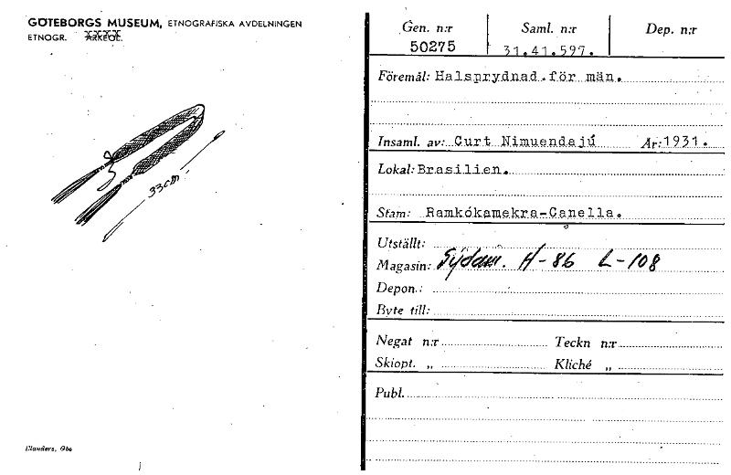 • GOTEBORGS MUSEUM, ETNOGRAFISKA AVDELNINGEN ETNOGR. .den. n:r 50275 Samt. n:r 31.41.59-7. Dep. n:r Föremål: Hals.:ory.dn.a.d.. fö.r. man 0 InsamL av.....0uxt N .,mu e n d.a j31 Ärl 931 Lokal: Stan]: .... Visa hela