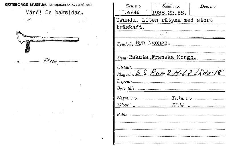 • Katalogkort ur Världskulturmuseets arkiv.