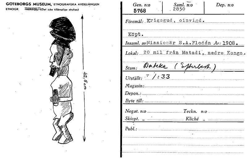 • Dep.- n:o GOTEBORGS MUSEUM, ETNOGRAFISKA AVDELNINGEN ETNOGR. 1i1lbia4Det icke tillämpliga strykes) Gen. n:o 5768 • . . 2850 Samt. n:o F&erlig: Krigsgud, oinvigd. Köpt. Insaml. Är: 19.08.. Lokal: 20 m... Visa hela