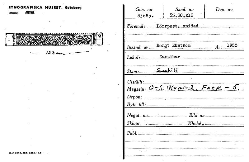 • Ar: 1953 Insaml. av • Bengt Ekström 12 Lokal: Zanzibar Stam: S Utställt: Magasin: S,e Depon: .Byte till: Negat. Bild n:r Skiopt. „ Pub!. ELANDERS. GBG. 3870. 10.51. ETNOGRAFISKA MUSEET, Götebor... Visa hela