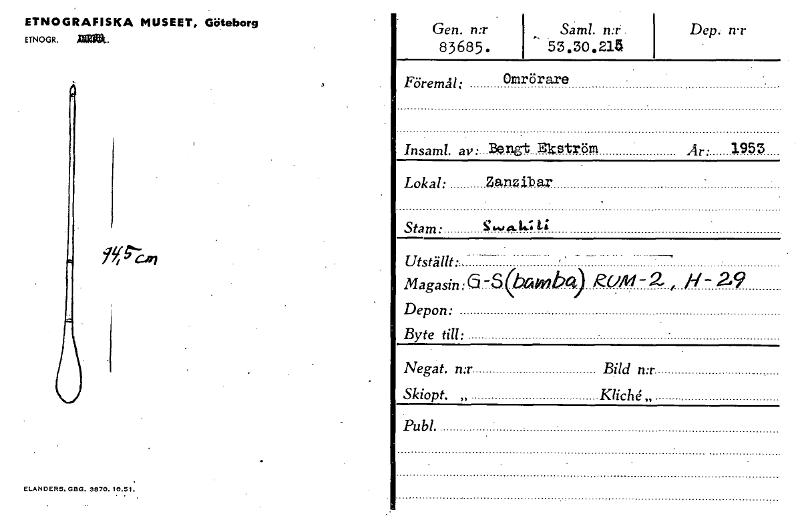• ETNOGRAFISKA MUSEET, Göteborg ETNOGR. f-C-071 Negat. n:r Bild n:r Skiopt. „ Pub!. ELANDERS. GBG. 3870. 10.51. 83685. . 53.30.213 . Gen. n:r Saml. n:r Dep. nr Föremål: Omrörare Insaml. av: Bengt Ek... Visa hela