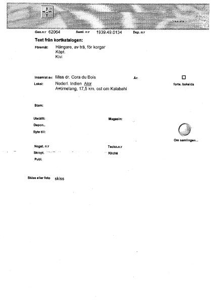 • Katalogkort ur Världskulturmuseets arkiv.
