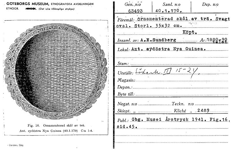 • . GOTEBORGS MUSEUM, ETNOGRAFISKA AVDELNINGEN ETNOGR. Amt. (Det icke tillåmpliga strykes) Fig. 16. Ornamenterad skål av trä. Ant. sydöstra Nya Guinea (40.1.170) C:a 1:4. • Elar■des, Gbg Gen.. r-?o..- 6... Visa hela