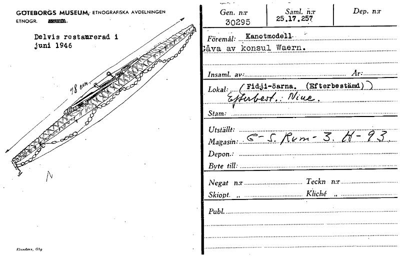 • Eholders,Gby Gen. n:r 30295 Saml. nx 25 .17 . 257 Dep. n:r Föremål: Kanotmodell- låva av konsul Waern. Insaml. av. Ar. Lokal: Y Stam: F141.-6 arna . (Sf t erbe stämd) -) Utställt: Magasin: . Dep o... Visa hela