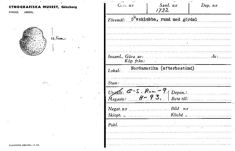 ;,. n:r Saml. n:r i Dep. n:r Föremål: S 'enklubba, rund med gördel ETNOGRAFISKA MUSEET, Göteborg ETNOGR. ARKEOL. Insaml., Gåva av: Är: Köp från: 13, 504"....- Lokal: Nordamerika (efterb e s t ämd) S...