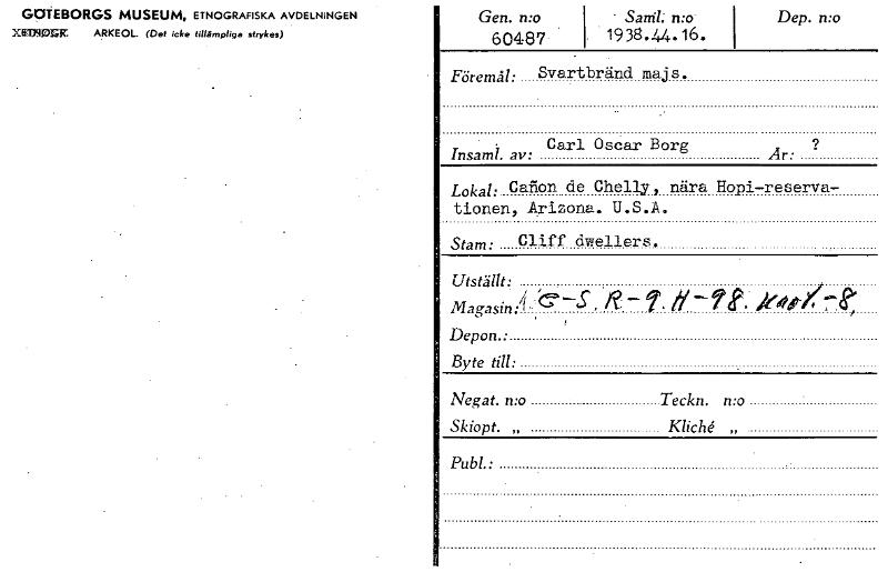 • Katalogkort ur Världskulturmuseets arkiv.