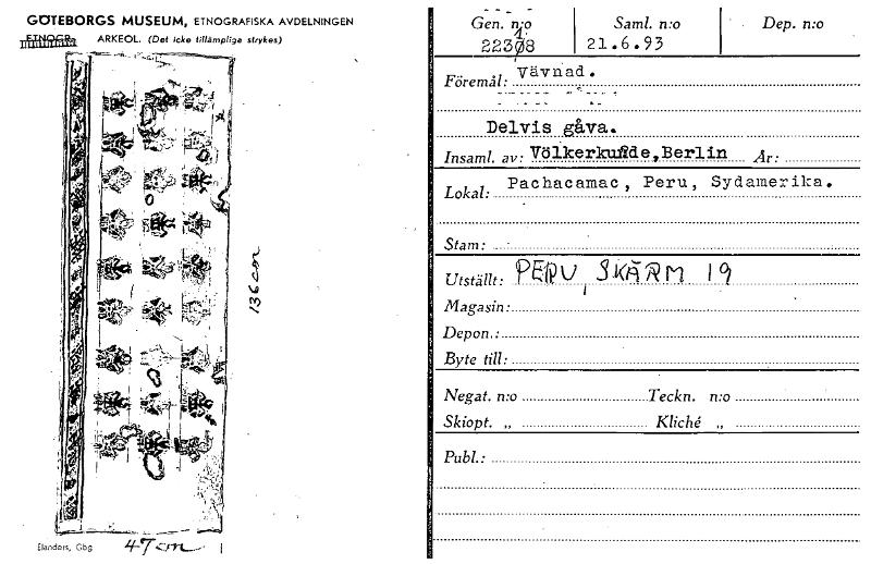 GCJTEBORGS MUSEUM, ETNOGRAFISKA AVDELNINGEN nefifidå ARKEOL. (Det icke tillämpliga strykas) . i r Elanders, Gbg Gen._ n •o 22308 Saml. mo 21. 6 . 9 3 Dep. n:o Vävnad. Föremål: . _ Delvis gåva. bisam/. av: Völkerku.fide,Berlin År: Pachacamac , Peru, Sydamerika. Lokal: Stam: Utställt: ?CP u 3 k/4 R ii 1 g Magasin: Depon. • Byte till: Negat. n:o Teckn. n:o Skiopt. „ Kliché „ Publ.Människan i väven 1973 [ocr]