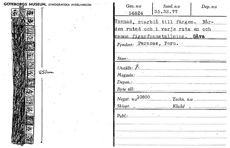 • GOTEBORGS MUSEUM, ETNOGRAFISKA AVDELNINGEN 2.0 Gen. n:o " 56824 Saml.mo 35.32.77 Dep. n:o ävnad, svarblå till färgen. Bår- sien_rutOh_i_vux.j.e_xuta en Och samma_figurframställning- Gåva Paracas, Pe... Visa hela