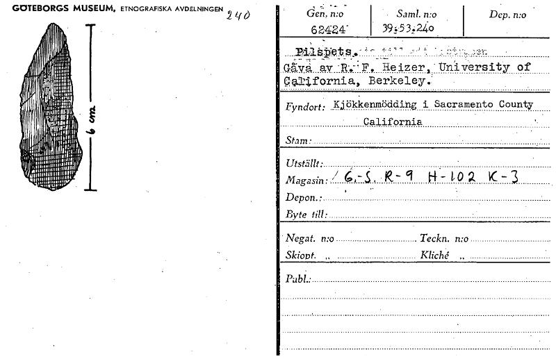 • GOTEBORGS MUSEUM, ETNOGRAFISKA AVDELNINGEN Lf Gen. n:o 62424' Saml. n:o Dep. n:o 39,-,53240 Bil stie ts..-J --t Gåya av R.P. Heizer, UnIversity of Nklifornia, Berkeley.: Fyndort: Ksiölckenmödding i ... Visa hela