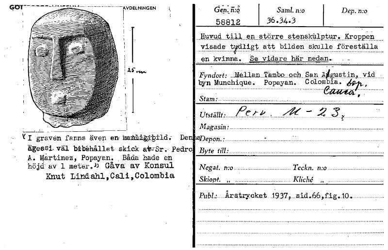 , - YI gravn fanns även en tatIlepild. Den ägeesi. väl bibåhållet skick atvSr. Pedro A. Martinez, Popayan. Båda hade en höjd av 1 meter») Gåva av Konsul Knut Lindahl,Cali,Colombia d eii... ii:ö: 58812...