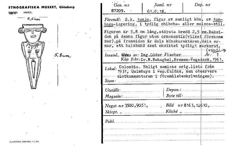 • ETNOGRAFISKA MUSEET, Göteborg 111P R. ARKEOL. ELANDER5. 000 502. 11.53. - Gen. ,n:r .Saml. n:r 87209. - 1- 61.-6; 18. - Dep. n:r - - - Föremål: ....S.. k.._ turd o , figur..av...manligt ..kön ,...a_v.... Visa hela