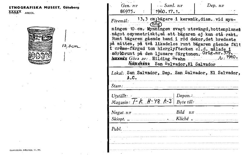 • ETNOGRAFISKA MUSEET, Göteborg fnm?c ARKEOL. ELANDERS. GBG 502. 11. 53. ' . Gen. • mr 86975. : i • -- Sam!. n:r 196O.17.1. I . Dep. n:r Föremål: 13,3 cmbägare .i keramik , diam. , vid inin- og . • n i... Visa hela