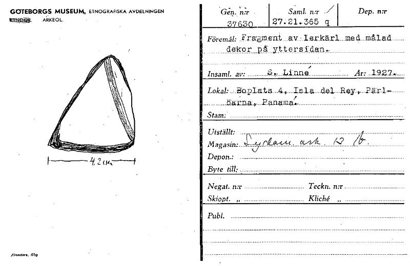 Gen. n:r 37630 Samt. n:r -/ 21 .365 Dep. n:r GOTEBORGS MUSEUM, ETNOGRAFISKA AVDELNINGEN EflagPset. ARKEOL. if, -2 (0,---9 Föremål: Fragment av. -.I.er..kärl .me.d. dekor på yttersidan._ • Insaml. av: 5•Linne År: 1,927,. Lokil: .13Opiats_4„isla_del_Rey,-Pärl- Earna,-2e.namat. Stam: P Magasin: Depon.: Byte till: Negat. n:r Teckn. n:r Skiopt. „ Kliché„ Publ. Utställt: [ocr]