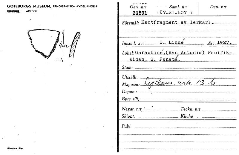 GOTEBORGS MUSEUM, ETNOGRAFISKA AVDELNINGEN 021~ ARKEOL. Rin.ders, ONT de-n- ..7n7r. ,. • • 38591 - Saml. n:r W..21.507 i Dep. n:r Föremål: Kantf ramen.t. .av .1e.rkärl. . • / Insaml. av: S— Linne År: 1927, / Lokal:.0.arachine.„.C.S.a.n....A.at.o.ni.o.)....P.a.c.ifik.— . sidan,. S.. Panamd.. Stam: - Utställt: Magasin: i . Depon.- Byte till: Oga/frug . 0 / Å. / 3 • . Negat. n:r Skioot. „ Teckn. n:r Klich „ Publ. . . , . . • : , : , . . [ocr]