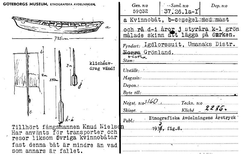 GOTEBORGS MUSEUM, ETNOGRAFISKA AVDELNINGEN. 72.5-vw■ klichiaV- drag vänd! Tillhört fängsfhannen Knud Nie ls Har använts för transporter och resor liksom övriga kvinnobåtar fast denna båt är mindre än ...Visa hela