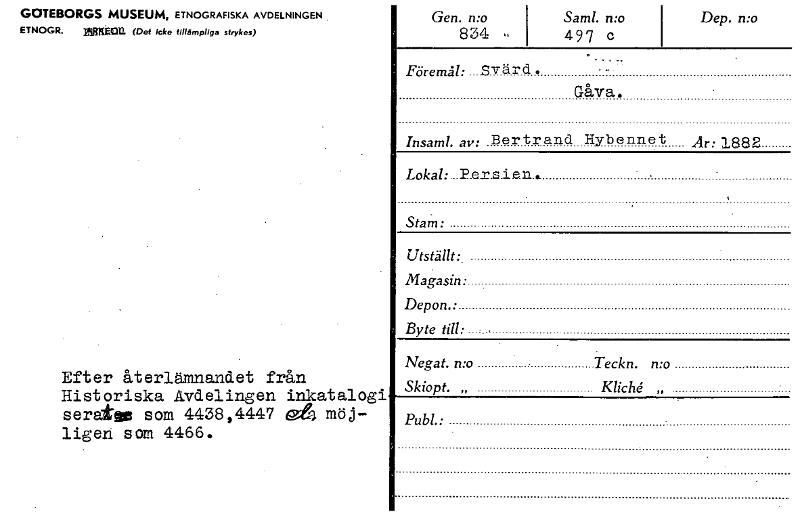 • Katalogkort ur Världskulturmuseets arkiv.