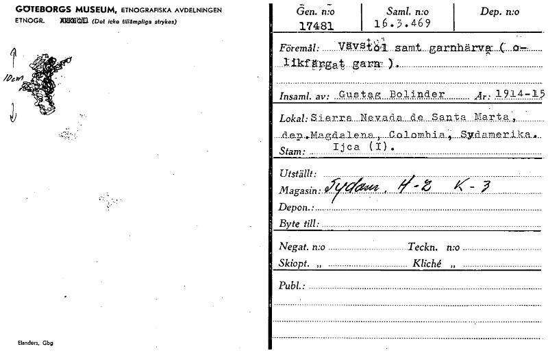 GOTEBORGS MUSEUM, ETNOGRAFISKA AVDELNINGEN ETNOGR. EISKIEW (Det Icke strykes) Elanders, Gbg öen. n.; 17481 Saml. n:o 1 16.3.469 Dep. n:o . +.:,-i .. Föremål: VErvstni...zanit. garnhärv.a- (' .s2---, Iikfä-rga,..garn, Y.. Insaml. av: Gustaf', Bolinder Är: 1914-15 Lokab Sie.r.r.e....NAT..a.(3a de Santa Marta' . ....d.e.p...Mag.d.a.l.e.na.,....C.clonill.4....Sydame.r.i.k.a.... Stam: Ijca (I). Utställt: Magasin:17 .~ , y-z /6 , Depon.: Byte till: Negat. n:o Teckn. n:o Skiopt. „ KlicU „ • Publ.• [ocr]