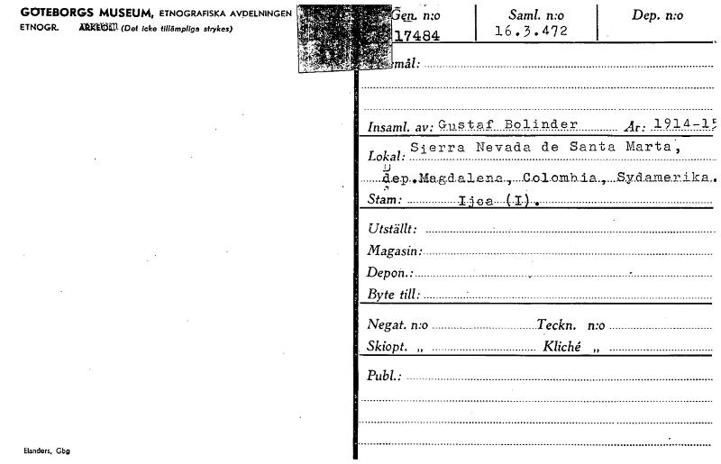 • Katalogkort ur Världskulturmuseets arkiv.
